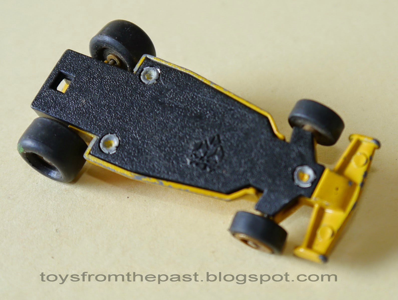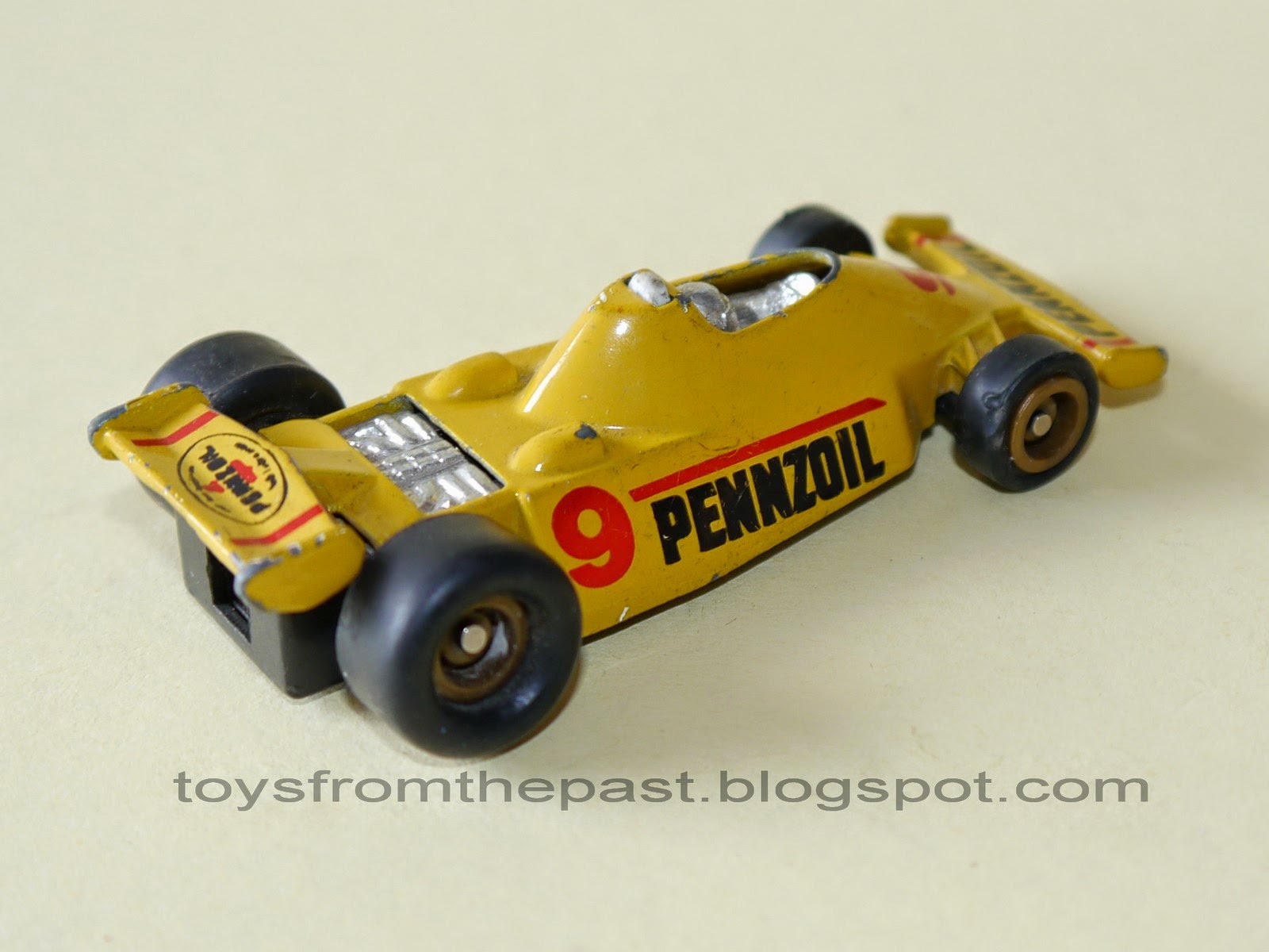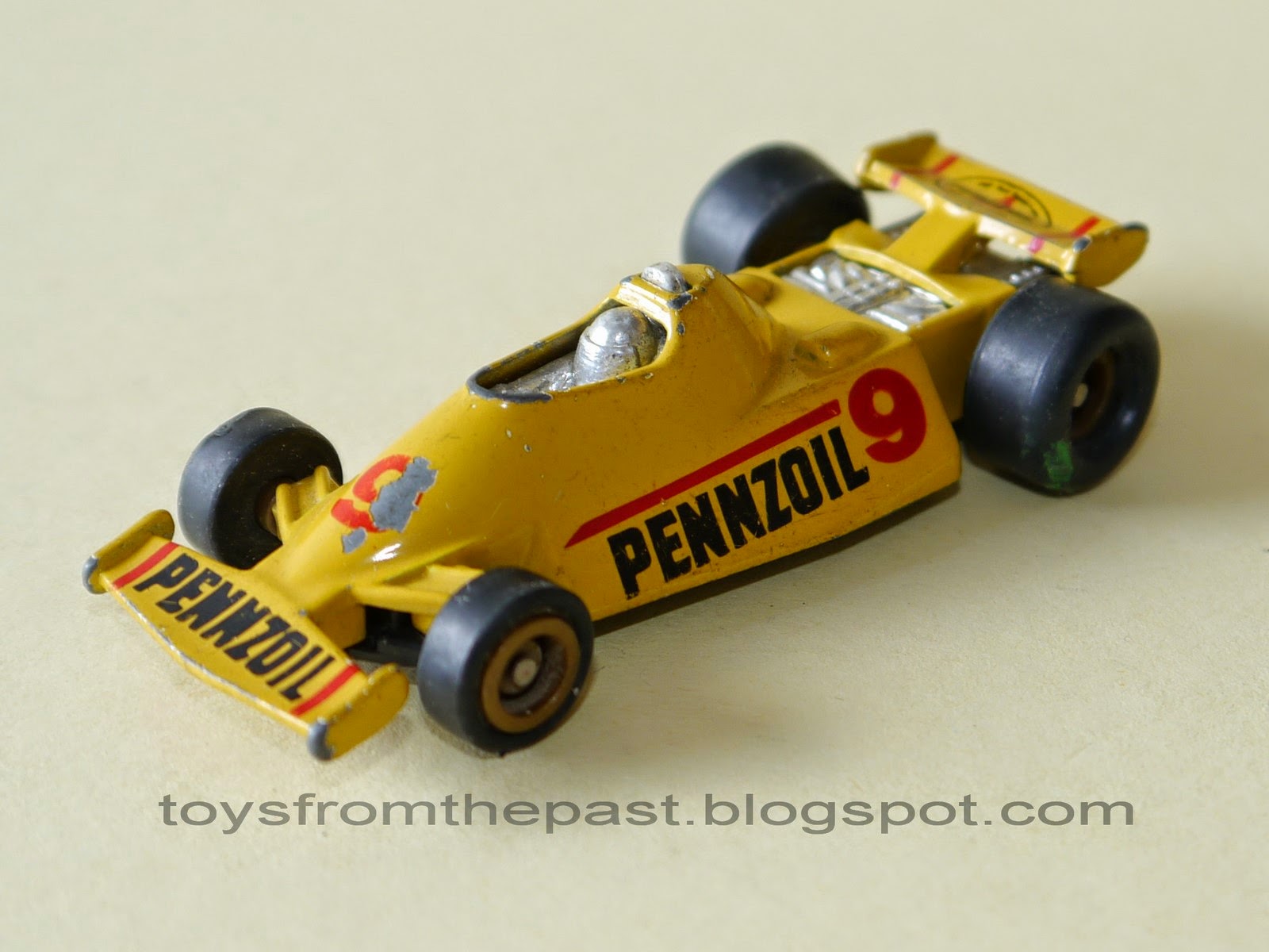 UPDATE: Indy Racer "Pennzoil" in yellow. Seems to be more modern, since it has rubber wheels. Don't know much about it, but the plate is less detailed and the MC Toy logo is located differently from the two models above. Rare model.